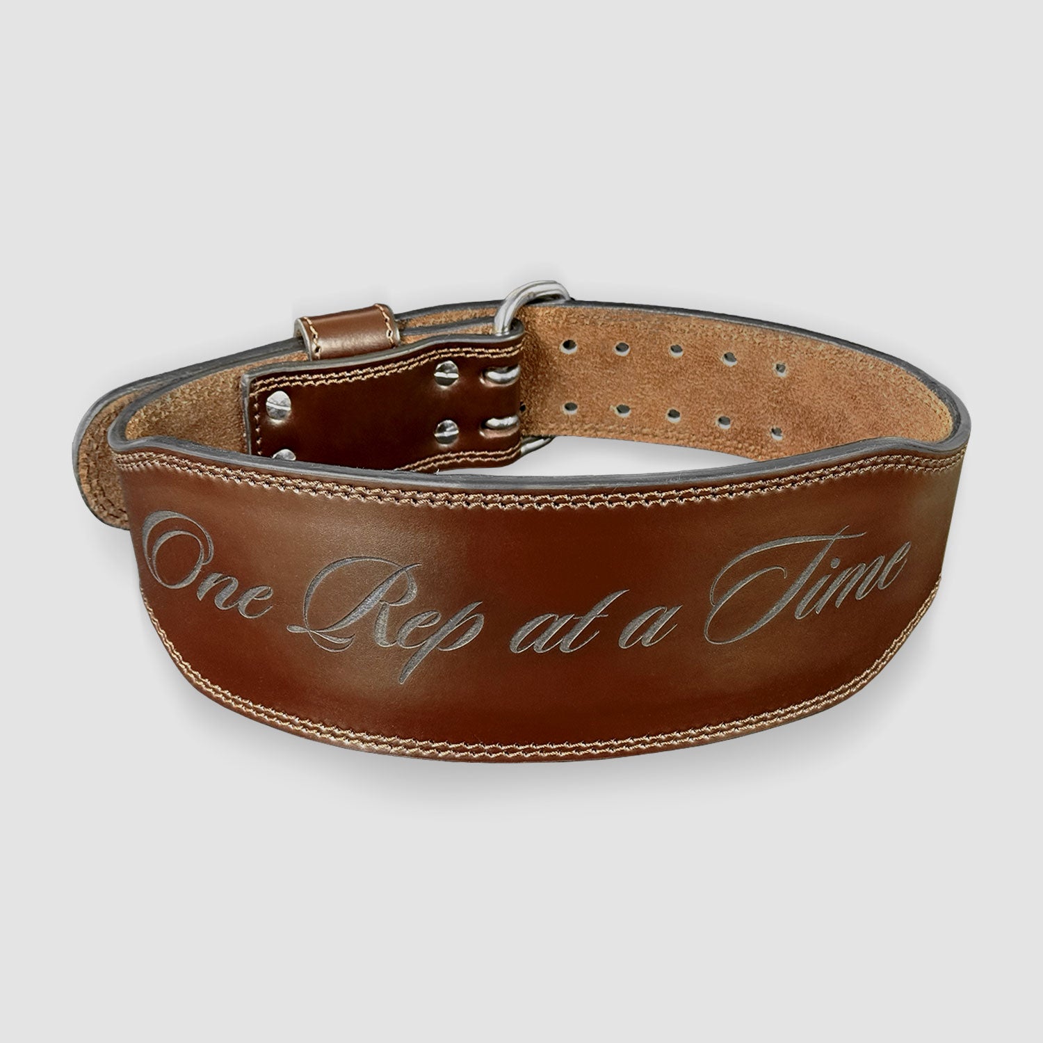 Iron Sanctuary x Aesthreadics “One Rep at a Time” Custom Leather Weightlifting Belt